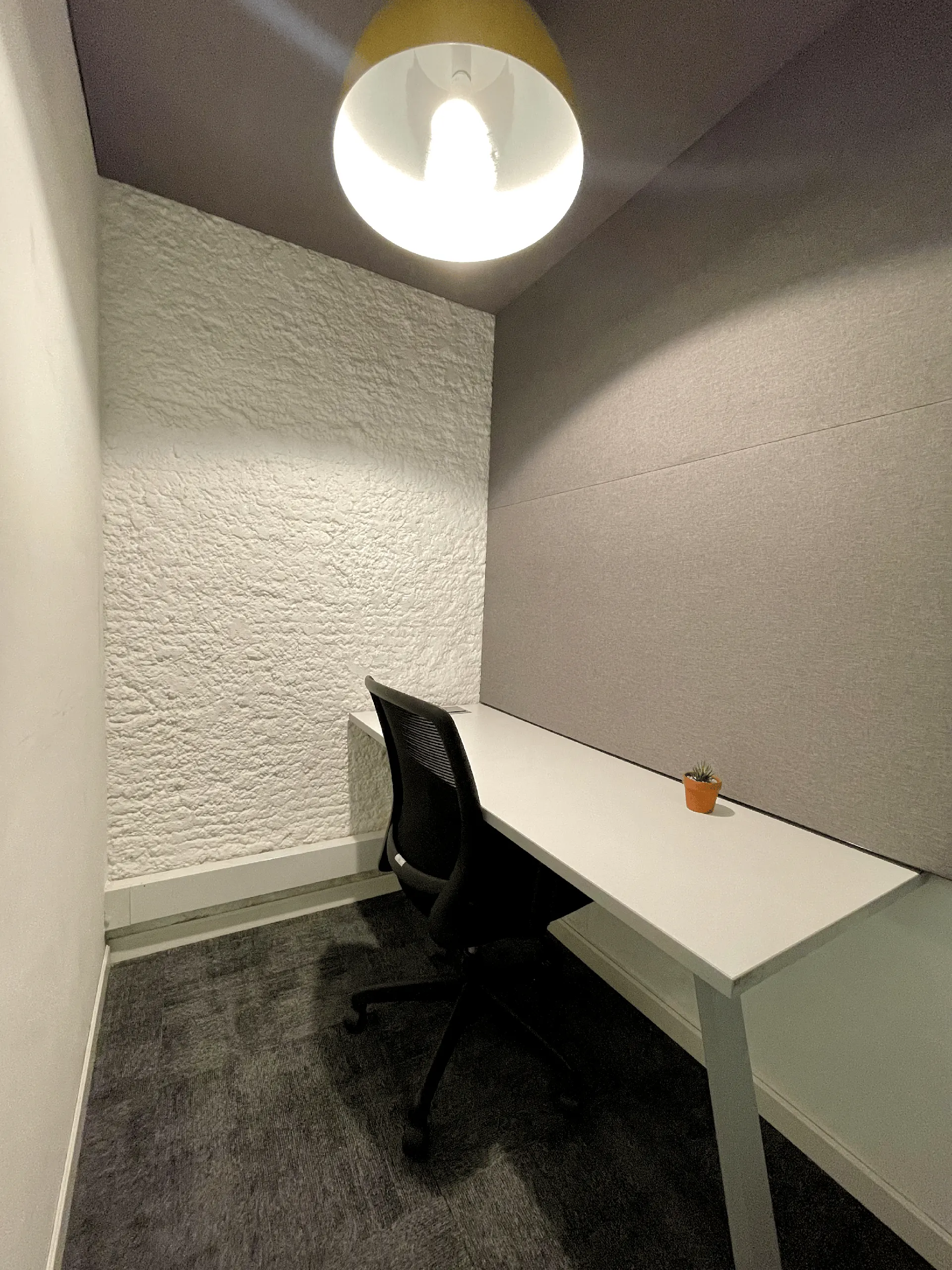 Perfect for those seeking privacy for a virtual meeting or for more focused attention. This space features acoustic treatment that reduces outside noise.