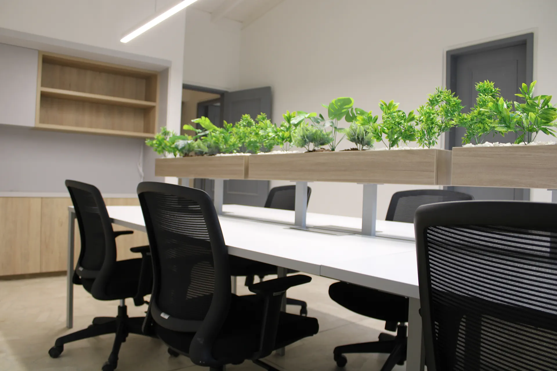 This permanent rental office is designed for the total comfort of the team, with ergonomic furniture, a private bathroom, storage space, air conditioning, high-speed internet, a LAN connection, and security cameras.
