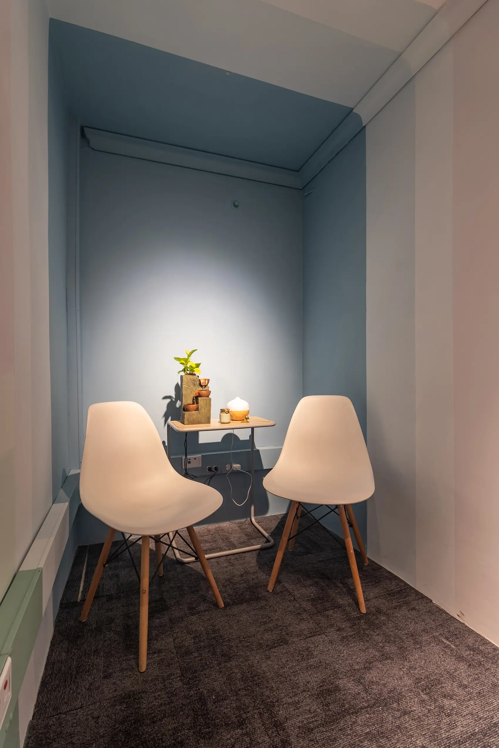 With a serene atmosphere, warm lighting, scented candles, and comfortable furnishings, it provides the perfect setting and comfort for deep conversations and moments of introspection.