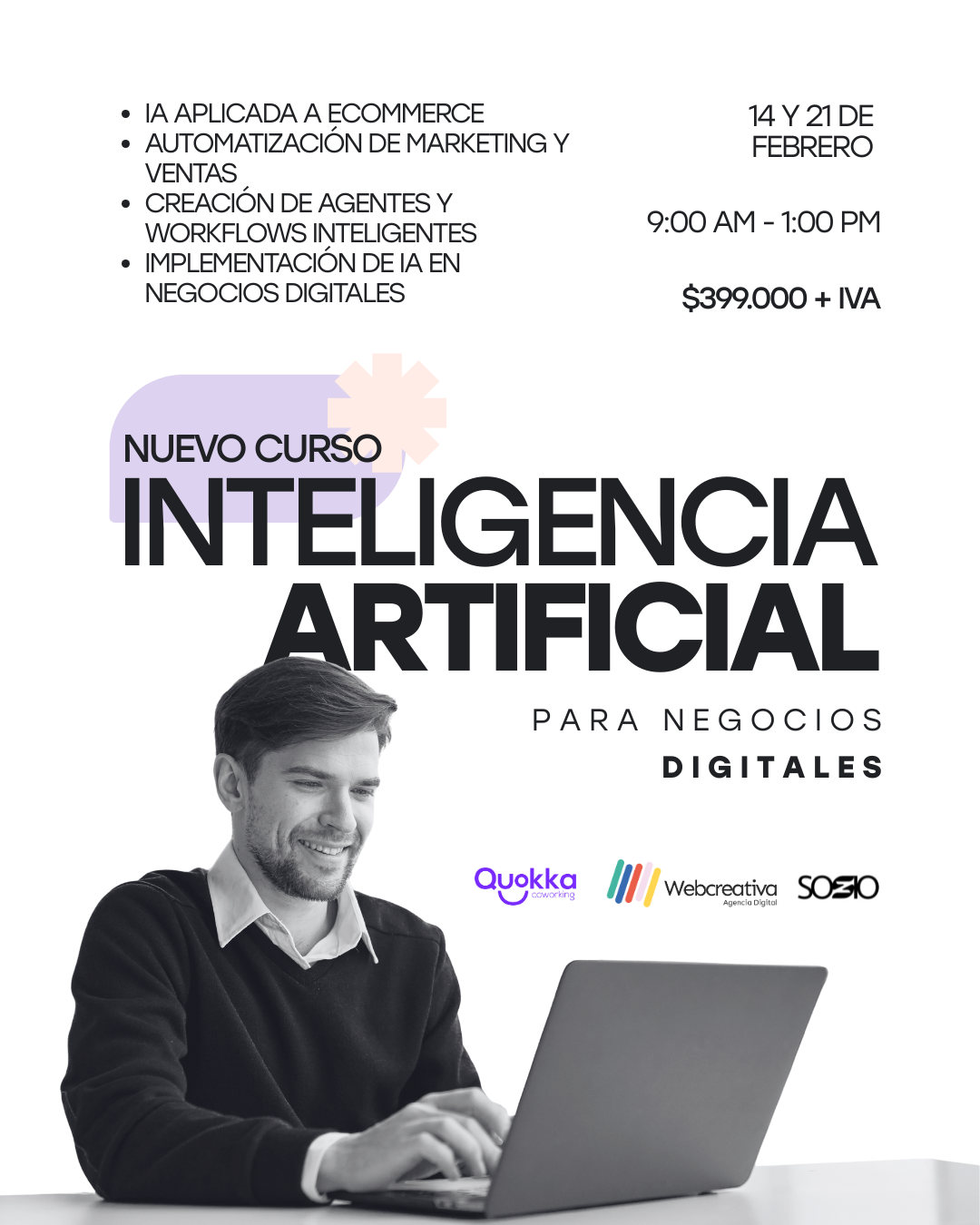Por eso llega el nuevo curso de INTELIGENCIA ARTIFICIAL APLICADA A NEGOCIOS DIGITALES de Webcreativa y Sozio 🤜🤛